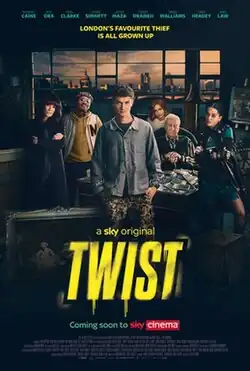 Twist is a 2021 British crime drama film directed by Martin Owen and co-produced by Noel Clarke and Jason Maza, who also stars in the film. The film, based on the 2014 Tom Grass novel Twist which is itself an adaptation of Charles Dickens' 1838 novel Oliver Twist, stars Rafferty Law, Michael Caine, Noel Clarke, Lena Headey, Rita Ora and Sophie Simnett. Twist was released on Sky Cinema on 29 January 2021 and was met with negative reception from critics.[2]