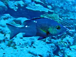 Lutjanus bohar, the two-spot red snapper, red bass, twinspot snapper or bohar snapper, is a species of marine ray-finned fish, a snapper belonging to the family Lutjanidae, not to be confused with the unrelated Australian snapper. It has a wide Indo-Pacific distribution.