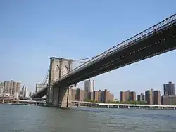 Two Bridges is a neighborhood in the New York City borough of Manhattan, nestled at the southern end of the Lower East Side and Chinatown on the East River waterfront, near the footings of Brooklyn Bridge and of Manhattan Bridge. The neighborhood has been considered to be a part of the Lower East Side for much of its history. Two Bridges has traditionally been an immigrant neighborhood, previously populated by immigrants from Europe, and more recently from Latin America and China. The Two Bridges Historic District was listed in the National Register of Historic Places in September 2003.[3]