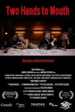 Two Hands to Mouth is a 2012 Canadian dark comedy drama film with an ensemble cast, the first feature film by long time television film director Michael DeCarlo, who also wrote and co-executive produced the film,[2][3][4] in which eight blindfolded guests assemble at a secret pop-up restaurant for an exclusive dinner that goes terribly awry, "forcing guests to defend themselves and their morally bankrupt lives."[4] The film was nominated for two awards at the 2013 Madrid International Film Festival.[5]