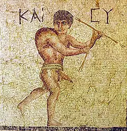 Tychon or Tykhon (Τύχων, Tykhōn = "producer") is the name of two minor deities in Greek mythology. One was a daemon of fertility associated with Phales, Priapus and his mother Aphrodite.[1] He and his companions Orthanês and Konisalos were associated with Dionysos or with the Hermai (phallic statues of Hermes). Although nowhere stated, his father was likely one of these two gods, who were half-siblings, sons of Zeus.
