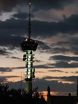 Tyholttårnet (lit. 'The Tyholt Tower') is a 124-metre (407 ft) tall radio tower with an observation deck in Trondheim, Norway. It was completed in 1985.[1][2] The tower features the Egon revolving restaurant, at an altitude of 74 metres (243 ft), which makes one complete revolution per hour.[1][3]