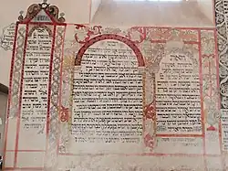 The synagogue was thoroughly restored in the late 1970s. The historic wall paintings, most of which are decorative texts of Hebrew prayers, were restored. The elaborate, decorative ceiling was not reconstructed although some idea of the style can be gleaned from the design of the Torah Ark.[2]