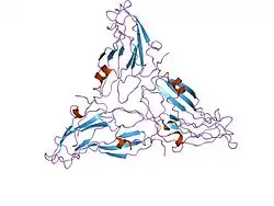 There are three subunits named, A, B and C. It contains a beta-jelly roll motif which consists of 9 beta-strands.[2]