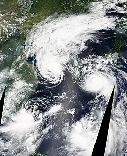 - ^ Jonathan Belles (August 23, 2018). "Typhoon Cimaron Becomes Japan's Second Typhoon Strike This Week While Soulik Moves Into South Korea". weather.com. The Weather Channel. Retrieved December 22, 2020.