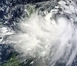 ![]() Kalmaegi at peak intensity over Hainan on September 16 | |
