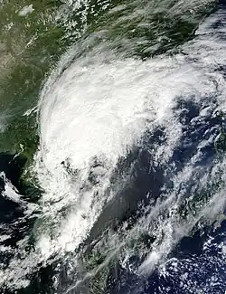 Typhoon Kompasu, known in the Philippines as Typhoon Glenda, was a strong tropical cyclone that moved along Okinawa, Japan and west coast of the Korean Peninsula before striking the Seoul Metropolitan Area in early-September 2010. It was the first significant system to directly strike the Seoul Metropolitan since Typhoon Prapiroon in 2000[1] and the strongest typhoon to directly impact the area since Tropical Storm Janis in 1995.[2][3]