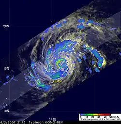 ![]() Typhoon Kong-rey near peak intensity on April 3 | |