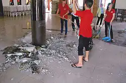 In advance of the typhoon, more than 122,000 residents were evacuated from vulnerable provinces to higher grounds. In Danang, soldiers were sent to help people readily secure their homes against the expected winds and guide ships to shelter. Thousands of travelers were left stranded as Vietnam Airlines cancelled over a dozen flights.[17] In total Nari caused 26 deaths and economic losses of 4,315 billion VND (US$204.5 million, 2013).[18]