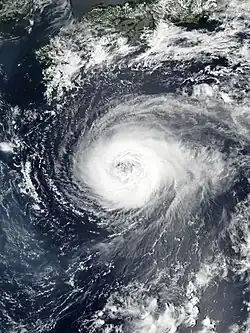 ![]() Noru at peak intensity south of Iwo Jima on July 31 | |