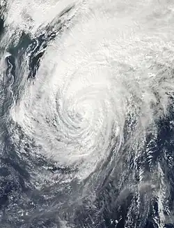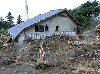 Typhoon Wipha weakened as it skirted Japan's eastern coastline on October 15. Though the storm caused only limited damage on the mainland, it spawned a massive landslide on the island of Izu Ōshima, killing at least 31 and leaving 13 others missing.[11] In addition, a woman was killed in western Tokyo, and the body of one of two schoolchildren who went missing near Kanagawa was later found. A man in Chiba and the other child were still reported missing, in addition to the victims on Oshima.[12][13] At least 350 homes were destroyed throughout Japan, mostly on Izu Ōshima.[14]