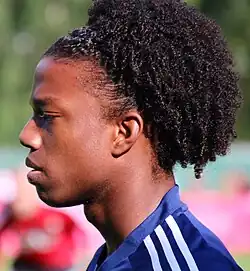 Malacia was born in the Netherlands, to an Afro-Curaçaoan father and Afro-Surinamese mother.[24] Malacia was a youth international who represented the Netherlands at under-16, under-17, under-18, under-20 and under-21 levels.[25][26][27][28][29] He was called up to the preliminary squad for the Curaçao national team for the 2021 CONCACAF Gold Cup.[30] On 27 August 2021, Malacia received his first call-up for the Netherlands national football team for the 2022 FIFA World Cup qualification matches against Norway, Montenegro and Turkey.[31] He made his debut on 4 September 2021 in the match against Montenegro.[32]