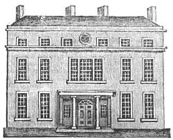 ![]() An illustration of the house in the 1770s before the removal of the central venetian window and the addition of a portico. | |