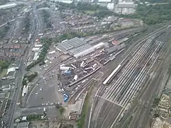 ![]() Tyseley Traction Maintenance Depot (top); Tyseley Locomotive Works (around the turntable); and carriage sidings | |