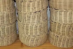 The cheese was first produced around 1840 at HaMeiri Dairy, established in the home of Meir Arzoni (later HaMeiri), who immigrated to the Holy Land from from Qajar Iran.[2] Gvina sfatit is a mild curd cheese molded in a basket that gives the cheese distinctive circular striations.[3] The cheese has an elastic texture and low fat content. The milk is pasteurized at a low 72 °C (162 °F), which preserves the food proteins. Trimming is mainly based on the action of enzymes contained in a special ferment and on calcium chloride rather than on the action of lactic acid. The fermentation is quick, about an hour. After most of the whey is separated, the cheese is stored in straw or plastic baskets for several hours to drain the remaining whey and form its round shape. For the remainder of the draining time, the cheese is inverted several times to help the draining and to form the basket's pattern on all sides.