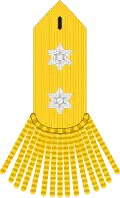General staff, artillery, engineer and field officers wore bullion fringed epaulets: Generals with one or two five-pointed stars, depending on rank. Colonels, lieutenant colonels and majors plain gold (infantry: silver) epaulets. Captains a single epaulet on the right shoulder, lieutenants on the left shoulder.[8]