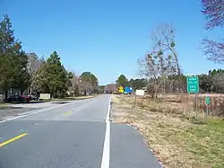 Proceeding north US 41 / SR 11 travels along the county line between Houston and Peach counties just west of Warner Robins. The highway passes then passes in and out of the irregular city limits of Warner Robins, to the west of the center of the city and Robins Air Force Base, Georgia's largest industrial complex.[5] North of Warner Robins the highway turns northeast onto SR 49 where it joins the US 41 / SR 11 concurrency. Passing Middle Georgia Regional Airport, the highway turns north before an interchange where routes join with US 129 and SR 247 (Hawkinsville Road) and continue north into Macon.