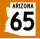 About 3.8 miles (6.1 km) southeast of exit 230, and after passing the access road heading south to Meteor Crater, US 66 curved northeast to cross I-40, then made a gradual curve to the southeast. Shortly afterward, US 66 crossed I-40 a second time, where the westbound Meteor Crater Rest Area sits today. Immediately after crossing I-40, US 66 curved northeast to cross over I-40 a third time along with the Santa Fe Railway, then made a sharp turn to the east, followed by a gradual curve to the southeast. At I-40 exit 239, US 66 took the abandoned roadbed back to I-40 and followed the route of the present-day Interstate. About two miles (3.2 km) southeast of exit 239, US 66 left I-40 again onto an abandoned roadbed between the current Interstate and the Santa Fe Railway heading southeast, eventually crossing into Navajo County. Where the I-40 Industrial Spur crosses the railroad, the abandoned roadbed, which carried US 66, tied into "Old West Highway 66", where the highway entered Winslow.[11][16] At the intersection with current SR 99 (former I-40 Business), US 66 headed southeast into downtown Winslow onto Second Street. Through downtown, US 66 passed the Winslow Visitor Center and Standin' on the Corner Park.[11][16] At the intersection with Williamson Avenue, where SR 99 turns south with southbound SR 87, US 66 met SR 65 at its northern terminus.[2][16] From here, SR 65 headed south to its other terminus at the Coconino National Forest boundary, while US 66 continued southeast on present-day northbound SR 87 out of town.[2][16]