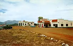 At exit 285, US 66 crossed present-day I-40 into Holbrook becoming Hopi Drive (today signed as US 180 and I-40 Business).[11][16] Along the western section of old US 66 in Holbrook is the Wigwam Village Motel, a motor court built to resemble a group of tipis.[22] At the intersection of Hopi Drive and Navajo Boulevard, US 180 heads southeast towards Springerville and Silver City, New Mexico, concurrent for a short distance with southbound SR 77.[3] In 1940, this intersection was the western terminus of US 260. US 260 followed the general path of present-day US 180 into New Mexico, where it ended in Deming.[2] US 66 on the other hand, followed northbound SR 77 and I-40 Business on Navajo Boulevard.[11][16]