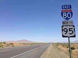 US 95 is part of a proposed northwestward extension of Interstate 11 (I-11) from Las Vegas. The interstate highway would primarily follow the US 95 corridor through central and northwestern Nevada, extending to I-80 and US 95 Alt. in Fernley near Reno and Sparks via Tonopah. In 2018, the Nevada Department of Transportation had initiated public outreach regarding its long-range planning efforts to narrow down options for the future I-11 corridor.[24][25]