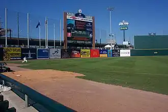 | Field size | Left - 320' Left-center - 380' Center - 400' Right-center - 390' Right - 335' |