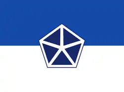 The corps's shoulder patch, a pentagon whose points lie on an imaginary circle 2+1⁄8 inches (5.4 cm) in diameter whose edges are white lines 3⁄16 inch (0.48 cm) in width and whose radial lines are white 1⁄8 inch (0.32 cm) in width, was approved on 3 December 1918. The triangles thus outlined in white are flag blue. The pentagon represents the number of the Corps, while blue and white are the colors associated with Corps flags.[3]