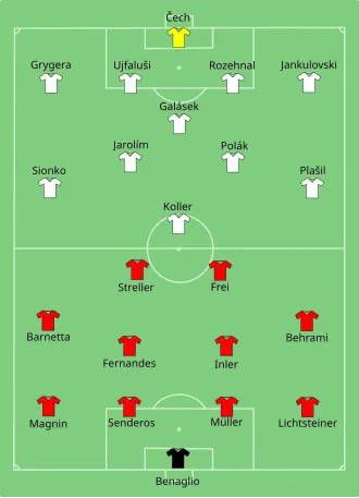 - ^ a b "Full-time report Switzerland-Czech Republic" (PDF). Union of Football European Associations. 7 June 2008. Archived from the original (PDF) on September 28, 2014. Retrieved 9 June 2012.