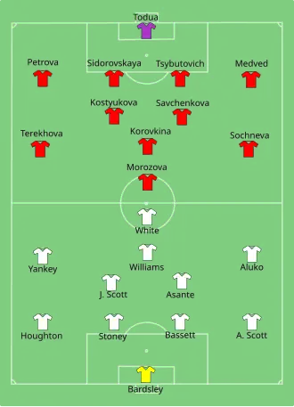MF 14 Tatyana Skotnikova Yellow card 90' upward-facing green arrow 68'