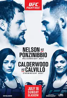 UFC Fight Night: Nelson vs. Ponzinibbio (also known as UFC Fight Night 113) was a mixed martial arts event produced by the Ultimate Fighting Championship held on July 16, 2017 at The SSE Hydro in Glasgow, Scotland.[2]