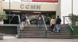 According to its yearly statistical report (2013), the university controls 52 units and supplementary departments, each linked to one of six academic centers. It has a total of 48 454 active undergraduate students plus 7 333 students in undergraduate online courses, and a yearly graduation rate of 5 381 students. As of post-graduation studies, there are 5 389 individuals undergoing master's degree and 5 5382 candidates for doctor's degree.[46] Of its 3 821 professors, 3 068 hold a doctor degree, 618 are masters and 61 are specialists.[47] In addition, its high-school unit ("Colégio de Aplicação", or Application School) accounts for 760 enrolled students.[48]