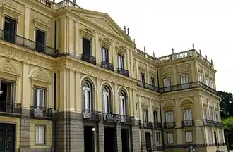 Among the most noteworthy museums and cultural spaces are: the National Museum, Latin America's largest museum and anthropological of natural history as well as Brazil's oldest scientific institution.[61] Its building is a conversion from the Brazilian Imperial Family's old palace in "Paço de São Cristóvão" and it was founded by royal figure Dom João VI in 1818, but integrated to the university only much afterwards, in 1946.[62] Brazil's emperor Dom Pedro II himself, an enthusiast for scientific knowledge, contributed to the museum's collection with Egyptian art, fossils, botanic species and many other items obtained by during his personal trips.[63] Laboratories occupy a great portion of the museum and spread to some buildings raised in "Horto Botânico" (Botanic Garden), in "Quinta da Boa Vista".[64]