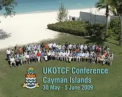 UKOTCF has organised six international environment conferences since 1999, the most recent being held in Gibraltar in 2015, with support from HM Government of Gibraltar and the Gibraltar Ornithological & Natural History Society.[34] UKOTCF conferences bring together conservation professionals from across the UKOTs, CDs and beyond, providing a forum in which to share information and best practice, and forge stronger environmental links between UK Overseas Territories, Crown Dependencies and other small island nations. The latest conference included involvement of environment ministers from several territories.[35] Proceedings of all UKOTCF-organised conferences are publicly available on the UKOTCF website.[36]