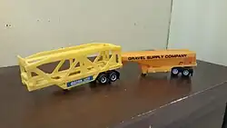 There were lots of color and detail variations. For example, the 'Bekins' box trailer can have a plain white or plain gray base, or come with a white base with round black circles painted at the base of the support legs - presumably to resemble small tires?