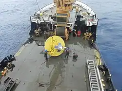 The ship's crane extends to 60 feet (18 m) and can lift 40,000 pounds (18,000 kg) onto her buoy deck, which is 2,875 square feet in area.[6][7]