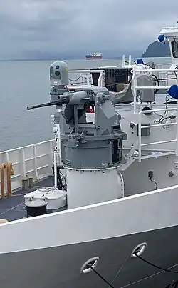 She is armed with a remotely-controlled, gyro-stabilized Mark 38 25 mm autocannon, four crew served M2 Browning machine guns, and light arms.[13]