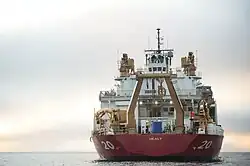 USCGC Healy (WAGB-20) is the United States' largest and most technologically advanced icebreaker as well as the US Coast Guard's largest vessel.[1] She is classified as a medium icebreaker by the Coast Guard.[1] She is homeported in Seattle, Washington, and was commissioned in 1999. On 6 September 2001 Healy visited the North Pole for the first time. The second visit occurred on 12 September 2005. On 5 September 2015, Healy became the first unaccompanied United States surface vessel to reach the North Pole, and Healy's fourth Pole visit (and her second unaccompanied visit) happened on 30 September 2022.