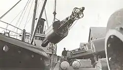 The ship was equipped with a steel mast and boom that served as a derrick to lift buoys and other loads on and off the ship. A separate steam engine and winch gave the derrick the ability to hoist loads of up to 20 tons.[9]