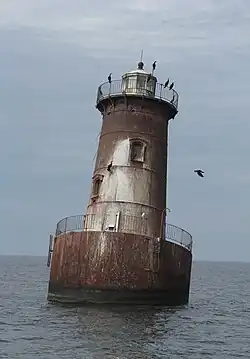 Exposed to corrosive saltwater, and buffeted by wind, wave, and ice, lighthouses required periodic maintenance. Jessamine made maintenance visits to the Bloody Point,[35] Cape Henry,[36] Cove Point,[37] Great Wicomico,[38] Holland Bar,[39] Hooper Strait,[40] Jones' Point,[41] Love Point,[42] New Point Comfort,[43] Thimble Shoal,[44] Thomas' Point,[45] Turkey Point,[46] Windmill Point,[47] York Spit,[48] Blaistone Island, Back River, Cape Charles City, Cape Hatteras, Choptank River, Cobb Point Bar, Craighill Channel, Craney Island, Croatan, Cutoff Channel, Deep-Water Shoals, James Island, Jordan Point, Laurel Point, Lower Cedar Point, Mathias Point, Neuse River, Northwest Point Royal Shoal, Ocracoke, Old Plantation Flats, Pamlico Point, Piney Point, Point Lookout, Point of Shoals, Pooles Island Lights, Roanoke Marshes, Seven-Foot Knoll, Solomons Lump, Smith Point, Stingray Point, Upper Cedar Point, Wade Point, Watts Island, and White Shoal lights .[32][31][49]