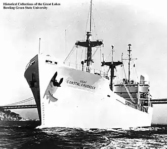 The US Navy acquired Coastal Crusader from the Air Force in 1964, a placed her in service with the Military Sea Transportation Service (MSTS) and redesignated her a Missile Range Instrumentation Ship, USNS Coastal Crusader (T-AGM-16). Navy records indicate Coastal Crusader was redesignated as a Survey Ship, Coastal Crusader (AGS-36) in 1969, and finally struck from the Navy List on 30 April 1976.[4][2]