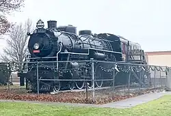 No. 5632 was subsequently reassigned to pull regular passenger trains in the GTW's Chicago Division between Chicago and Port Huron, Michigan alongside the K-4-a's.[24][25] In 1938, when the GTW received six streamlined U-4-b class 4-8-4 locomotives, No. 5632 was relegated to the GTW's Detroit Division, where it was reassigned again to pull commuter trains between Detroit and Muskegon.[24][25][26] The K-4-b last operated for the GTW on June 13, 1958, before it was retired from revenue service.[25][26] In August 1960, the GTW donated No. 5632 to the city of Durand, Michigan.[26][27][10] The following year, in 1961, the K-4-b was put on static display near the GTW mainline in Durand, and a dedication ceremony was held on May 20.[25][27][10]