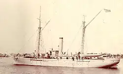 By 1913, Woodbury was not only the Coast Guard's oldest cutter, she was the oldest active-duty vessel in U.S. government service, as well as being the only ship to have seen active service in both the American Civil War and the Spanish–American War.[25] Despite her age, she was still able to perform useful service. On 10 January 1913, for example, the crew of Woodbury were able to effect temporary repairs to their ship's broken rudder to go to the aid of the steamer Monhegan, which, after breaking down on the Maine coast, was being driven to destruction by a gale. Woodbury was able to get a line to the stricken vessel and tow it to safety, albeit at the stately pace of 3 knots.[26]
