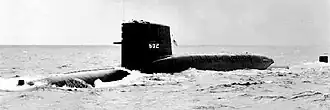 Her keel was laid down by the Portsmouth Naval Shipyard of Kittery, Maine, on 1 November 1958. She was launched on 14 May 1960 sponsored by Mary L. Beckwith[2] (great-granddaughter of President Abraham Lincoln), and commissioned on 8 March 1961 with Commander Leonard Erb commanding the Blue Crew and Commander Donald M. Miller commanding the Gold Crew.