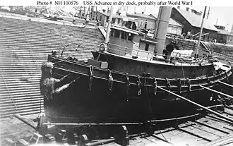 ![]() USS Advance (YT-28) In dry dock, probably after World War I.