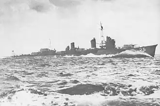 Albacore departed Australia on 26 December to patrol north of the Bismarck Islands. On 12 January 1944, she sank Choko Maru with two separate torpedo attacks. Two days later, in company with Scamp and Guardfish, she blew up Sazanami (flushed by Guardfish)[10] with four torpedoes from her stern tubes. Another destroyer attacked Albacore with fifty-nine depth charges, leaving Scamp and Guardfish free to pursue the three tankers; they succeeded in sinking one each.[11] Following more than a fortnight of uneventful patrolling, the submarine headed home. She made brief fuel stops at Tulagi and Midway Island before reaching Pearl Harbor on 22 February. After three days of repairs to get her ready for the voyage, Albacore continued on to the Mare Island Navy Yard in Vallejo, California for overhaul.