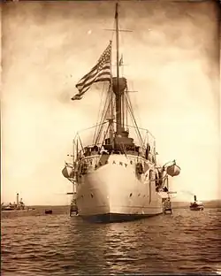 On the evening of 16 April 1908, Albany, Commander Henry T. Mayo, commanding, received expedited orders to immediately prepare to depart Mare Island and proceed to San Diego to embark "special peace envoy" William I. Buchanan and then on to Central America for a two-month "peace-keeping" cruise. Albany departed Mare Island on 20 April.[6][7] For the next fifteen months, she cruised the west coast of North and Central America and conducted surveillance missions to protect U.S. citizens and property in the perennially unsettled republics of Mexico, Honduras, El Salvador and Nicaragua, returning to Mare Island on 18 July 1909.[8][9][10]