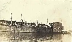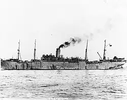 Neckar was launched on 8 December 1900 at Geestemünde, Germany, by Joh. C. Tecklenborg and was owned and operated by North German Lloyd. Neckar was 499.5 feet (152.2 m) long, had twin screws and quadruple expansion engines.[1] During 1900–1914, she was the third largest transporter of steerage passengers (nearly all immigrants) to the United States, most of whom disembarked in New York and Baltimore.[2] In the North Atlantic at the outbreak of World War I in the summer of 1914, the passenger and freight liner sought sanctuary at the neutral port, Baltimore, Maryland — lest she fall prey to the warships of the Royal Navy — and was interned, ostensibly for the duration of the conflict.