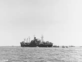 Bayfield arrived in Kobe, Japan, on 16 September and, the next day, got underway for Inchon, Korea. She spent the next seven months providing logistic support to the United Nations forces in Korea. She returned to San Diego on 26 May 1951 and, except for a cruise to Japan and back in September 1951, did not return to the Far East until March 1952, again to support troops in Korea.