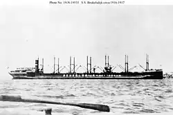 Beukelsdijk was assigned to the Naval Overseas Transportation Service (NOTS). She took coal to Brazil, calling at Bahia, Santos and Rio de Janeiro. On 4 June 1918 she left Rio de Janeiro carrying a cargo of coffee. On 6 July she reached New York, where she discharged her cargo and underwent repairs.[4]