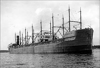 William Doxford & Sons built the ship in Pallion, Sunderland, as yard number 305. She was launched on 14 March 1903 as Grängesberg and completed that April.[1] Her registered length was 440.2 ft (134.2 m), her beam was 62.0 ft (18.9 m) and her depth was 26.0 ft (7.9 m).[2] Her tonnages were 6,749 GRT, 4,370 NRT, 10,530 DWT. Her holds had capacity for 488,000 cu ft (13,800 m3) of grain, or 452,000 cu ft (12,800 m3) of baled cargo.[3] She had seven pairs of masts, with derricks to work her cargo holds.