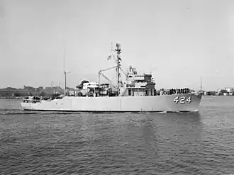 At the end of the first week in June 1954, Bold finally embarked upon her delayed shakedown cruise that she conducted off the New England coast. At the end of the summer of 1954, the minesweeper entered the Norfolk Naval Shipyard for five months of modifications and post-shakedown repairs. On 7 February 1955 near the end of the overhaul, Bold was reclassified an ocean minesweeper and redesignated MSO-424.